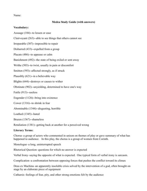 Read medea study guide questions Doc